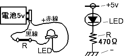 左が実際の配線図 右が,電子回路でよく使う,簡略回路図です.