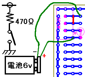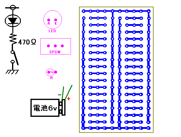使用する部品は,R,LED,SW(3P),そして電池ボックス(電池4本=
