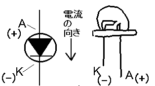 LEDは中が透けて見えるので、よく見ると、ふつうは電極の大きい方がKです。