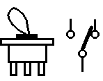 上が回路図記号,下が,3PSWをON-OFFSWにするための配線方法です.