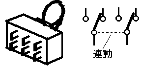 多くのSWは、図のような3Pスイッチ(3端子SW つまり切り替えSW)