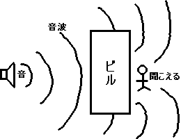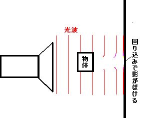 一方,光は波長が500nm程度なので, 回り込みはほとんど起きない. でも,たとえわずかでも光の回り込みは起きるので,影は,右図のように, わずかながらボケている. まして,それを拡大する(5)では,この回り込みによるボケを拡大している わけで,結果として像がすごくボケてしまう.これが,光学(5)の倍率には限界がある (最大1500倍)理由である. ※ちなみに,光の回り込みを利用して音データを読みとっているのが,CDである.電子(5)には,上記のような「(12)型電子(5)(TEM)」の他に,「(13)型電子 (5)(SEM)」というのもある. Transmission Electron Microscope Scanning Electron Microscope (12)型電子(5)(TEM):原理的に,薄切りスライスにする必要がある (13)型電子(5)(SEM):試料表面に電子をぶつけて,はねかえってくる電子(二次電子) をコンピュータ処理して,像をつくりだす電子(5). はねかえりを使うので,薄切りスライスにする必要がない.立体的な像を見ることが できる →図表p11 その代わり,倍率がTEMより少し劣る(コンピュータ処理する関係で).また, 真空にすること(生きたままは無理だねえ)と,白黒である点は,TEMと同じである. でも,立体像を見られるのはうれしいねえ. 物体表面の凸凹を知りたければ,SEMである.